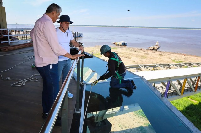 IMPLANTAÇÃO  Prefeitura de Manaus instala peças do piso do Skyglass na varanda do mirante Lúcia Almeida