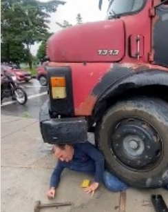 O motorista avistou a mulher à frente, porém não conseguiu frear a tempo. Ao tentar desviar dela, perdeu o controle da direção do veículo, girando pela pista até colidir com um carro estacionado e, infelizmente, atingindo a outra vítima. Em um momento de desespero, ele se lançou para fora do caminhão, mas acabou sendo arrastado para debaixo dele, sofrendo ferimentos na perna.
