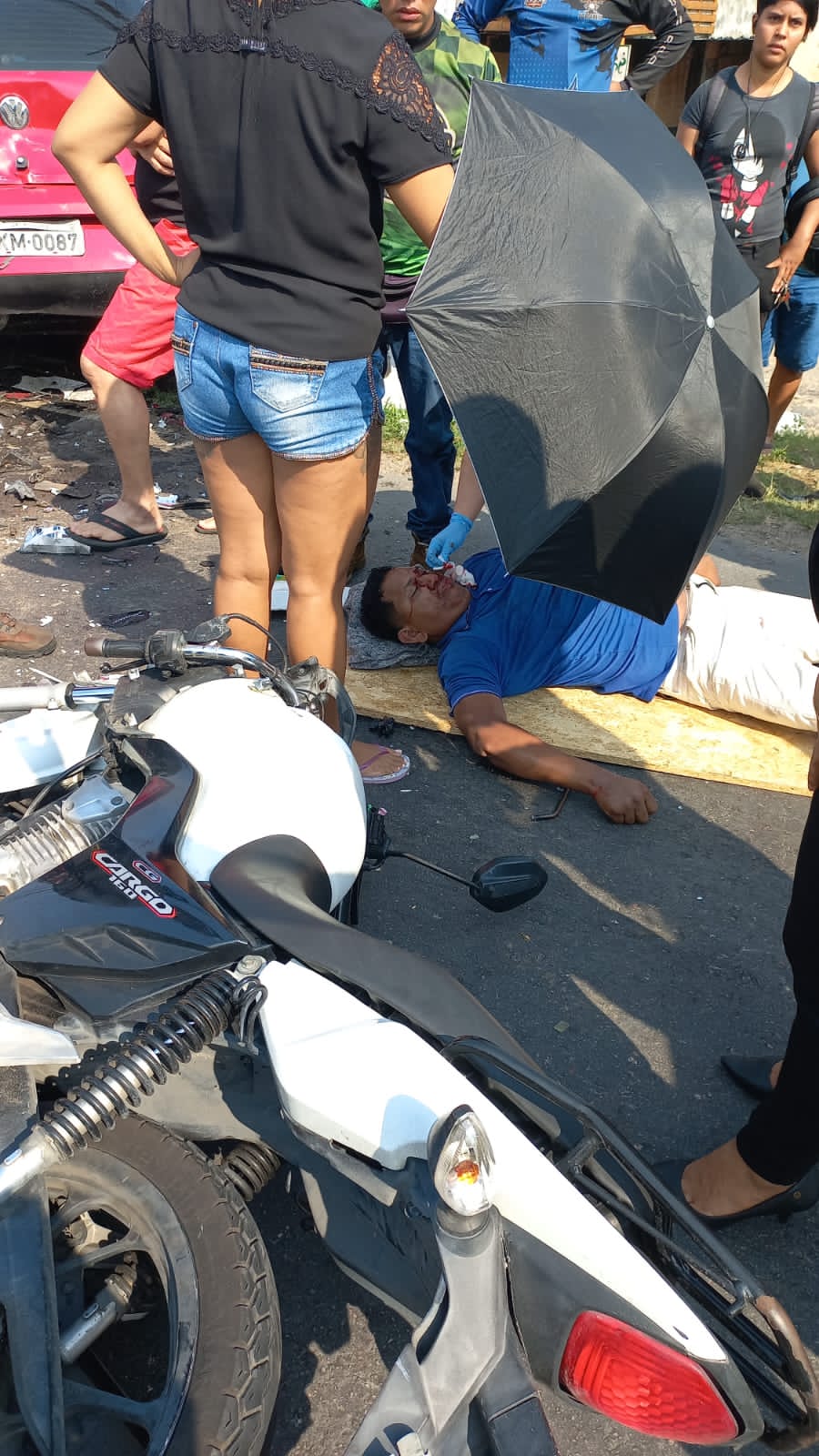 Na manhã desta quinta-feira (21), um terrível acidente na Avenida Max Teixeira envolvendo dois carros e uma motocicleta deixou várias pessoas gravemente feridas e presas às ferragens