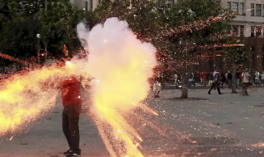 Já Fábio contou que, durante a manifestação, viu um objeto no chão e pegou, por curiosidade, sem saber que era um rojão. Na versão dele, Caio pediu insistentemente pelo artefato e Fábio o entregou.