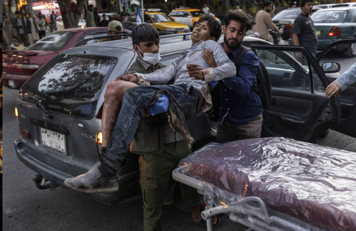 Homem ferido no aeroporto de Cabul chehando ao hospital