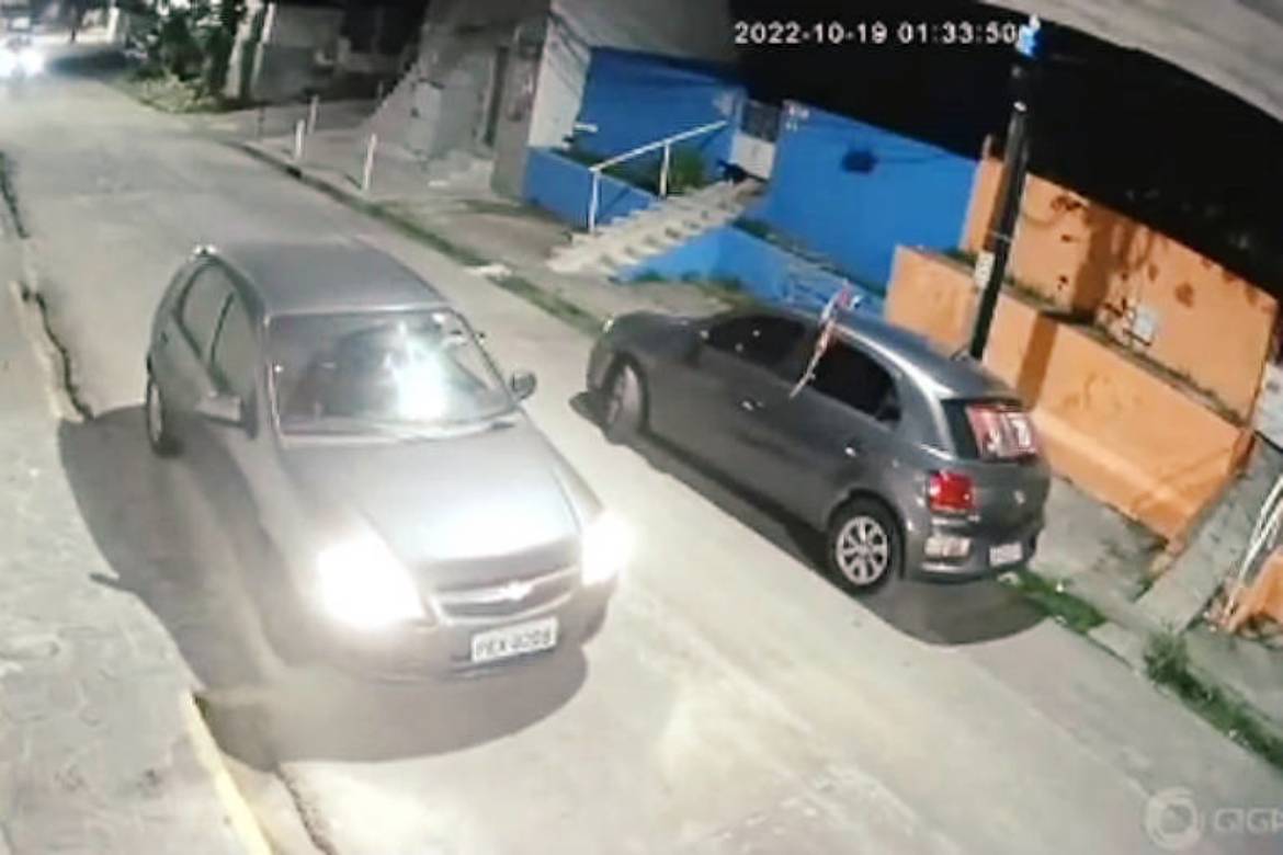 O homem estava em um carro modelo Celta de cor prata, conforme as imagens. Ao se aproximar do veículo do vereador, o suspeito pega a arma e atira diversas vezes.