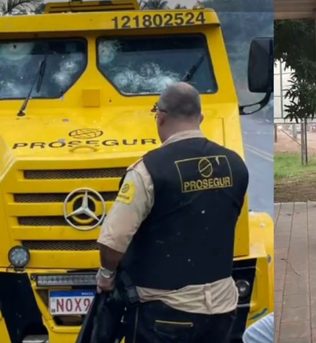 O carro forte de marca Mercedes pertencente a empresa PROSEGUR foi cercado pelos bandidos que tentaram detonar uma bomba de fabricação caseira e não obtiveram êxito.