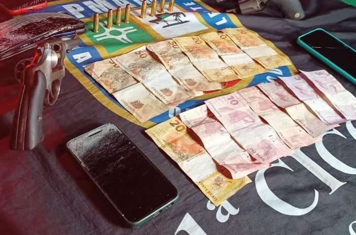 Com a dupla foram apreendidos dois revólveres calibre 38, oito munições intactas, quatro celulares, uma motocicleta de cor preta (placa QZJ-1G83) e R$ 275 reais em espécie. Os mesmos foram apresentados na 11º Distrito Integrado de Polícia (DIP).
