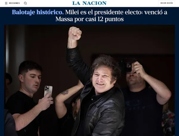 Eleições Argentinas: ultraliberal Javier Milei vence 2º turno; mais de 98% das urnas já foram apuradas