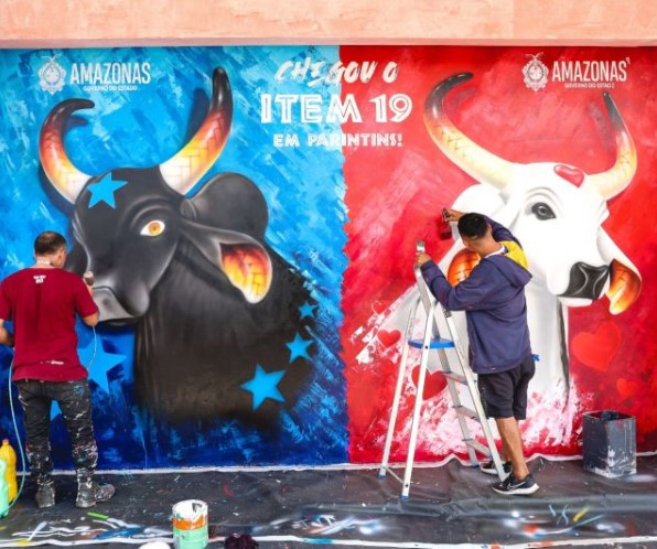 Os visitantes que chegarem para o 57º Festival de Parintins (a 369 quilômetros de Manaus), pelo Aeroporto Júlio Belém, poderão fazer o primeiro registro na Ilha Tupinambarana em frente ao mural instagramável pintado pelo artista Pito Silva. A pintura é uma extensão da arte do Mural do Bumbódromo, que também foi base de criação para a identidade visual da festa deste ano, que acontece entre 28 e 30 de junho.