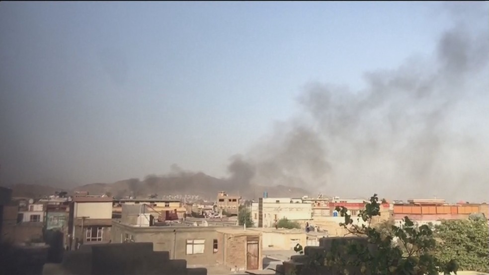 Reprodução de vídeo que mostra fumaça escura em Cabul, em 29 de agosto de 2021 — Foto: Reprodução