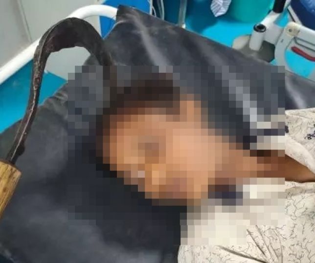 IMAGENS FORTES! Jovem cai da cama e fica com a foice cravada na cabeça. VEJA FOTOS