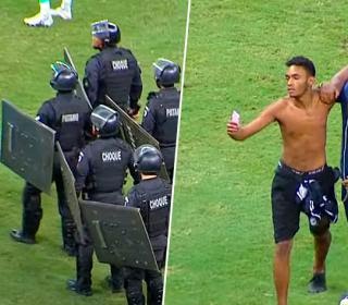 Policia e invasor no Estádio Mané Garrincha em Brasília (Foto:Lance)