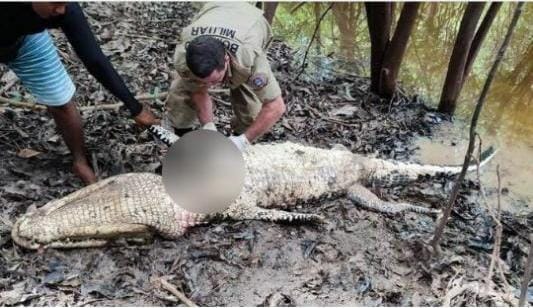 Depois de ser atacado por piratas, que cortaram sua cabeça e jogaram no rio o corpo do pescador Elias Araújo, foi encontrado sendo devorado por um jacaré-açu nesta quarta-feira (20).