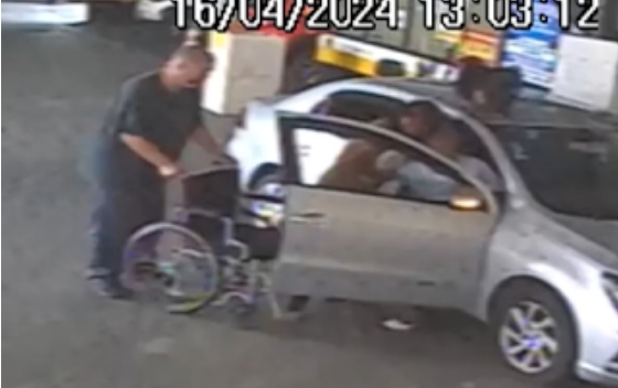 O motorista contou que chegou a ficar cerca de sete minutos sozinho com o homem no carro aguardando a mulher voltar com a cadeira de rodas até o estacionamento.