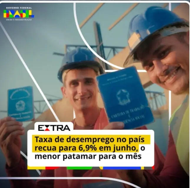 📉 O desemprego fechou o 2º trimestre com a menor taxa para o período em 10 anos.