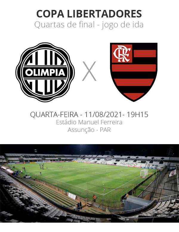 O Flamengo tem mais uma missão nesta quarta-feira no caminho do objetivo de conquistar o tricampeonato da Libertadores. A equipe enfrenta o Olimpia, em Assunção, na partida de ida das quartas de final da competição. Para os comandados de Renato Gaúcho será uma oportunidade de mostrar que a goleada sofrida no jogo contra o Internacional foi apenas um desvio no rumo.