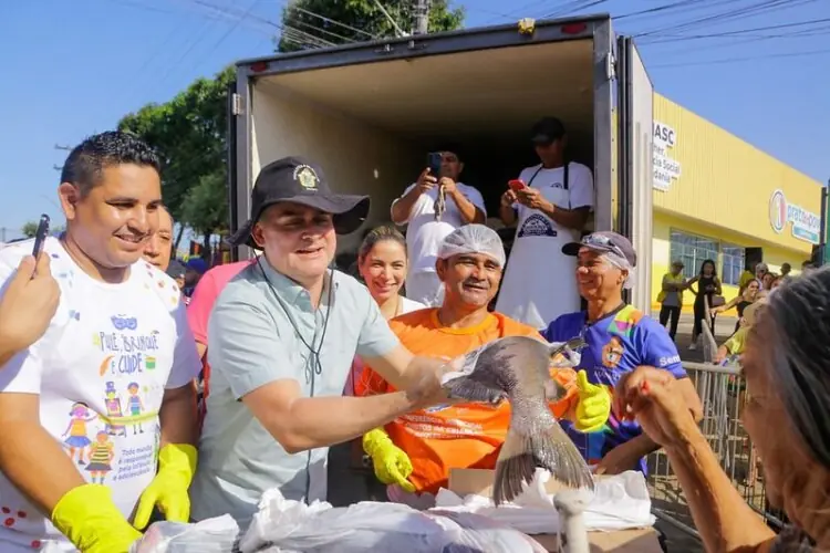 A Prefeitura de Manaus segue promovendo uma grande ação de solidariedade e segurança alimentar durante a Semana Santa, com a distribuição gratuita de 120 toneladas de pescado em todas as zonas da cidade. Nesta quinta-feira, 17/4, o prefeito David Almeida, acompanhou pessoalmente a entrega de 5 mil tambaquis no bairro Compensa, dentro da programação da “Páscoa na Floresta”, realizada por meio da Secretaria Municipal da Mulher, Assistência Social e Cidadania (Semasc) e do Fundo Manaus Solidária (FMS).