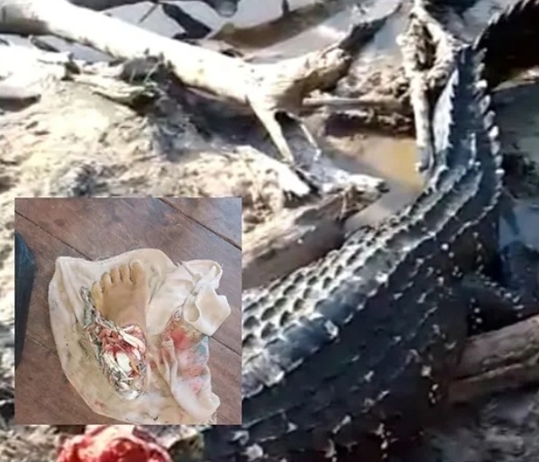 O Jacaré foi capturado e após morto por pescadores, o pé do pescador foi encontrado.