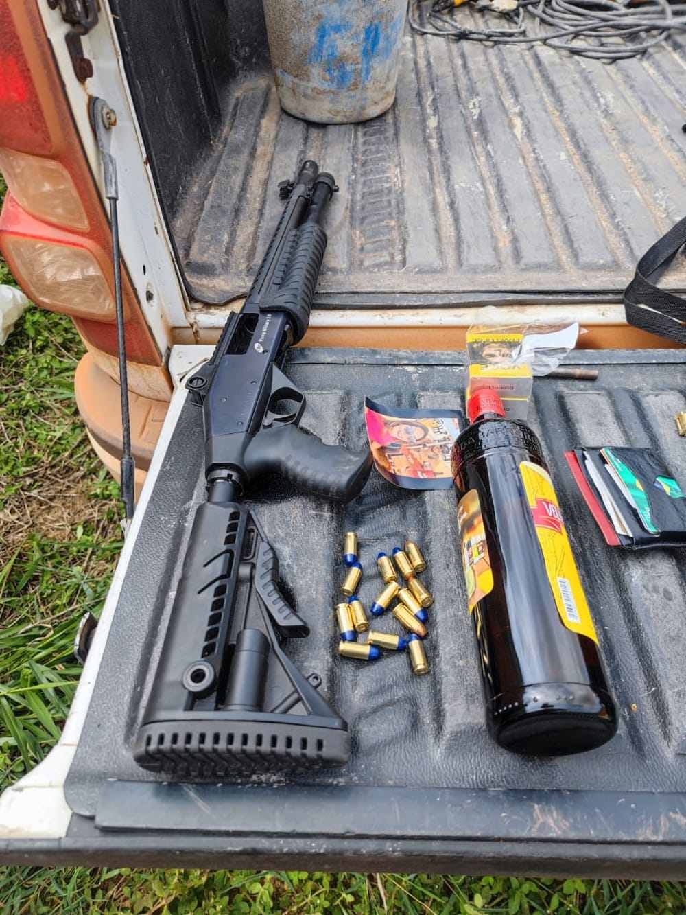 A Polícia Civil apreendeu, na manhã desta quarta-feira (22), a espingarda calibre 12 mm e a caminhonete usadas durante a chacina em um bar de Sinop, a 503 km de Cuiabá. O material estava em uma obra no bairro Vila Verde, no município. A tragédia deixou sete pessoas mortas, entre elas, uma adolescente de 12 anos.