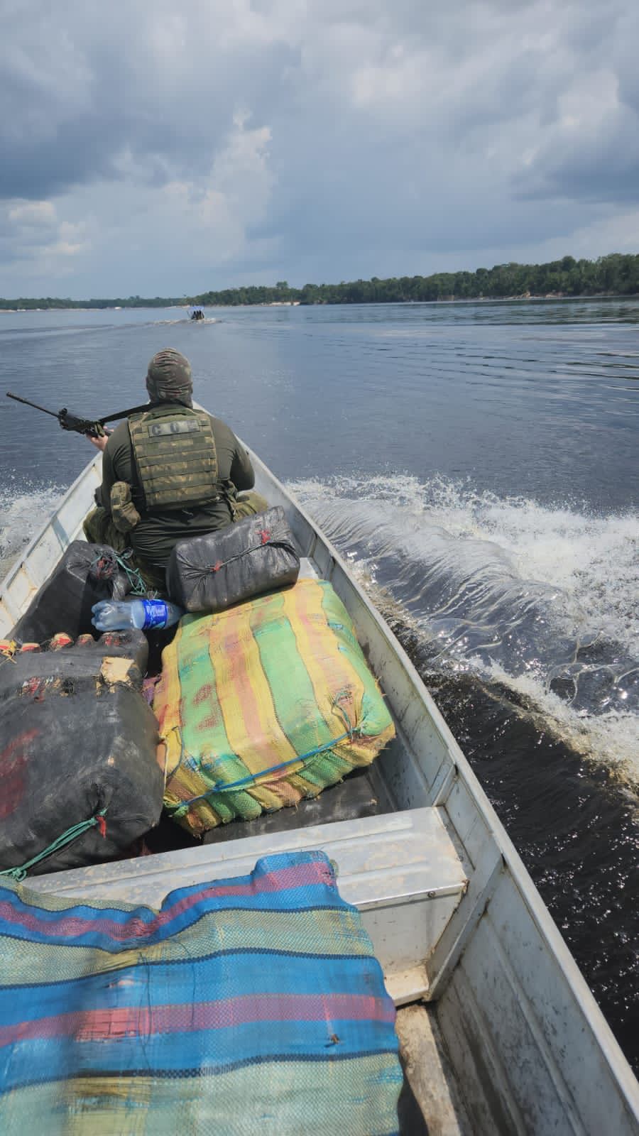 Foram apreendidos na ação 600 quilos de maconha tipo skunk, uma espingarda de calibre 20, três motores de popa e R$ 760 em espécie.