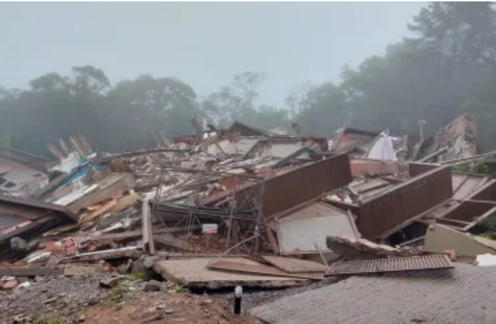 Um prédio desabou em Gramado, na Serra do Rio Grande do Sul, na manhã desta quinta-feira (23). O edifício residencial de cinco andares ficava no bairro Três Pinheiros. O acidente não deixou feridos, pois todos os moradores do local já haviam saído no último sábado (18), de acordo com a prefeitura da cidade, por conta do risco de desmoronamento.