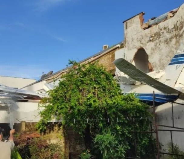 Um avião bimotor cai sobre casas em Goiânia; quatro pessoas feridas