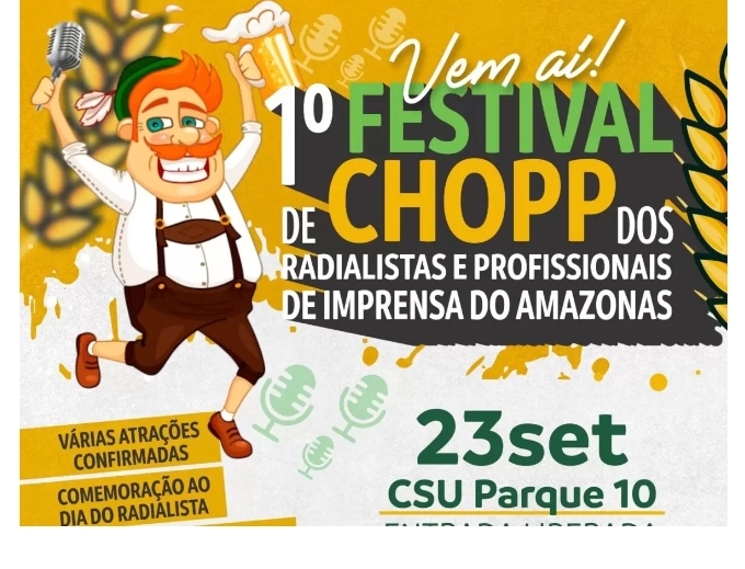 Grupo de profissionais do Rádio e TV do Amazonas realiza a primeira edição do Festival de Chopp da categoria. O evento acontece no dia 23 de setembro, no CSU do Parque 10 de Novembro, na zona Centro-Sul de Manaus.