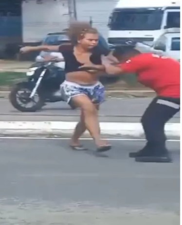 Silva correu atrás da mulher e conseguiu pegar seu celular de volta. Nas imagens, a bombeira parece soltar a mulher, entretanto, a criminosa tira uma faca da mochila e parte pra cima da vítima, que não reage.