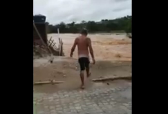 Brasil – Circula em grupos de aplicativos de mensagem, o vídeo de um homem aparentemente embriagado e que se joga em um rio onde a força da correnteza é visivelmente forte e agressiva.