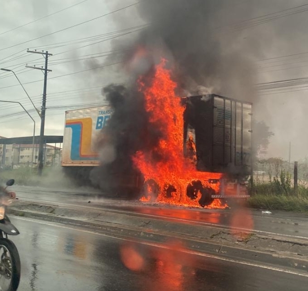 Nesta tarde de terça-feira, 14/02, uma carreta pegou fogo em meio a avenida Torquato Tapajós, na Zona Norte de Manaus.
